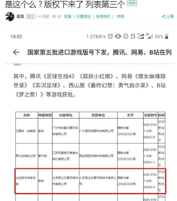 上周五,一位优秀的楼主墨眉开了帖子,说《仙剑奇侠传移动版》喜提版号了!!!