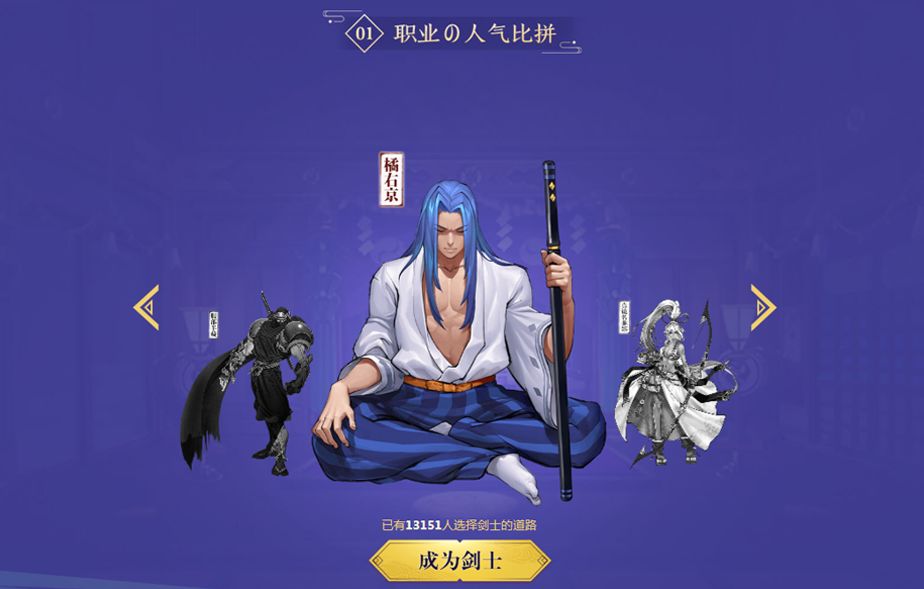 各位武者可在孤高桀骜的剑士、神秘冰冷的忍者、行走绿林的游侠以及管礼法的巫女之间,