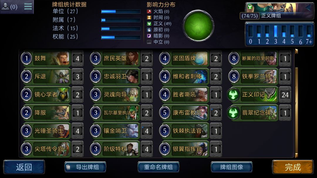 其他法术:鼓舞白卡一费过一还带buff,个人认为最强一费过牌,必须满编!斥退沉默加禁锢低费十分灵活,降服和斥退效果差不多,适当带一些即可。阶级特权是不卡费进入后期的保障,建议满编(如果尖塔传教士多也可以不满编),法术不多够用就行。