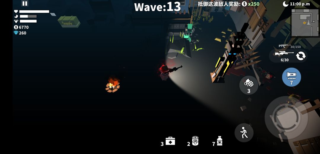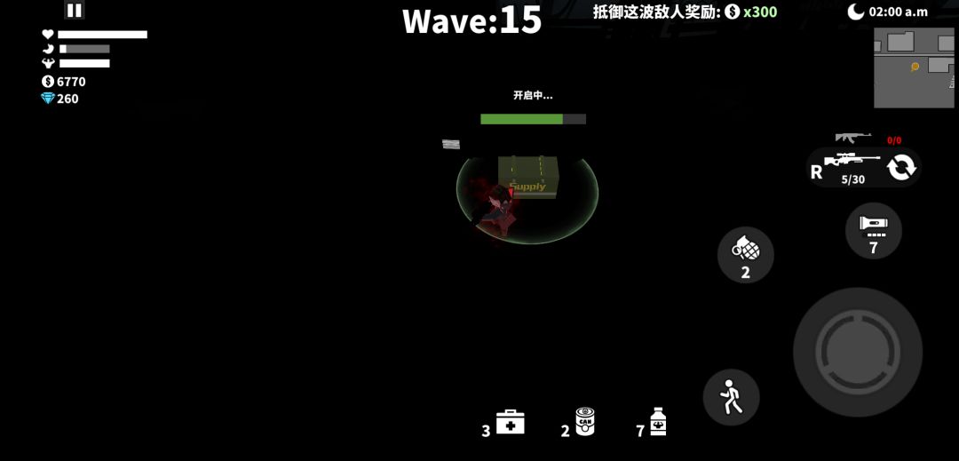 我是用ak+AWP打的,别的攻略都说用aa12,我没用过,感觉不太好,再攒点钱买awp就无敌了,然后配上吸血鬼,能夜晚吸血,就能一直打下去了。