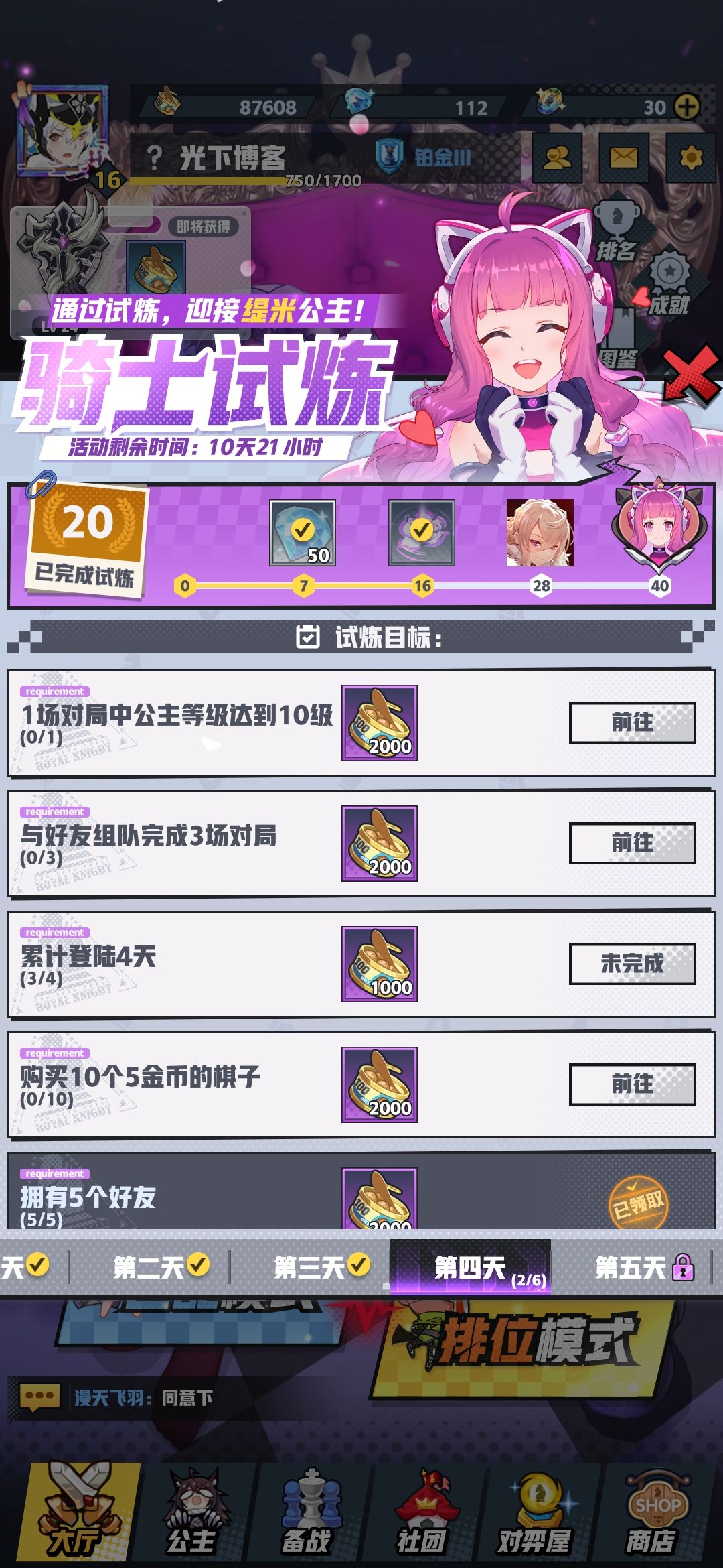 骑士试炼完成不了 明明打了 却没有进度更新 游戏体验极差!我打了很多遍,十级公主,买五钱卡都没攒进度 给个说法啊!