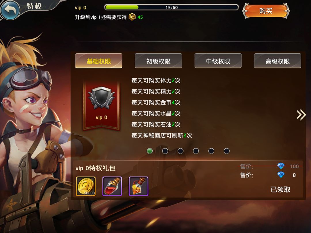 游戏画面偏暗!作为玩了几天的我给大家提供下攻略,话说要从16年开始说起!这个游戏就已经在内测了!测了一年!各位有心的可以去查下,什么九游等等都有攻略记载!都是三言两语简单的介绍一下场景功能,我结合现在的版本给你们总结一下,最贴心的游戏攻略!VIP等级分为四段模式!基础,初级,中级,高级!这个游戏里钻石很少得到、装备更是少的可怜,装备非常重要!VIP基础是给你4个装备、初级给法系狐女、中级给堕落之剑、绯红剑姬!高级绯红剑姬灵魂石!黄金套装武器!土豪朋友们会玩的非常顺利!