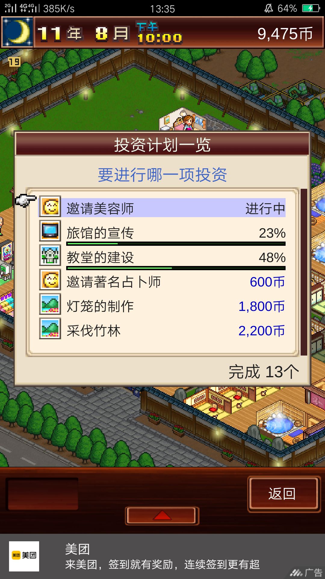 我邀请了美容师,结果这个投资永远在进行中,然后预约的房间也没有了!!美容师已经两年没来了,我累了!是卡bug了吗??
