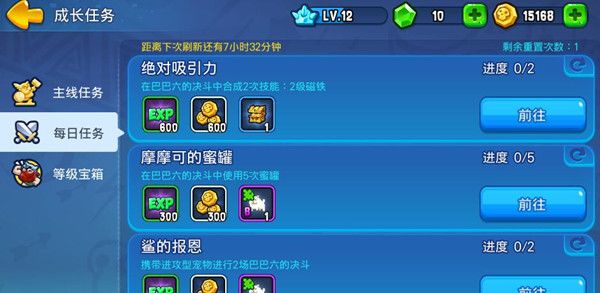 为了能让更多的玩家随着等级的提升参与成长任务,体验巴巴六的世界,此次版本将对经验获取途径做出调整,解锁道具将不再成为提升等级的唯一方式!每次参与巴巴六的对决也将获得经验。同时新增每日任务,每天上线完成任务可以获得丰厚的游戏奖励。