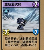 冰封:冰封区域,每回合结束时,该区域冬神单位+1/+0,其余势力单位-1/-0。