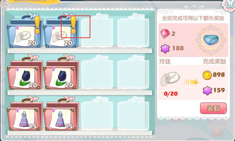 注意,比如上图,好友需要20件时装,点击“装载”就会一次性提供20件。一人一件凑齐20件完成任务什么的……暂时是不可行的……听起来好像集齐七龙珠召唤神龙(捂脸)
