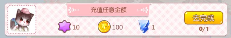 土豪小仙女们注意了,这里还有个任务哦!充值任意金额,即可完成。量力而行,不要强求。