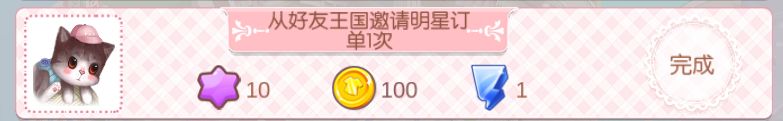 1.从好友王国邀请明星订单1次、送好友礼物1次、拜访好友1次: