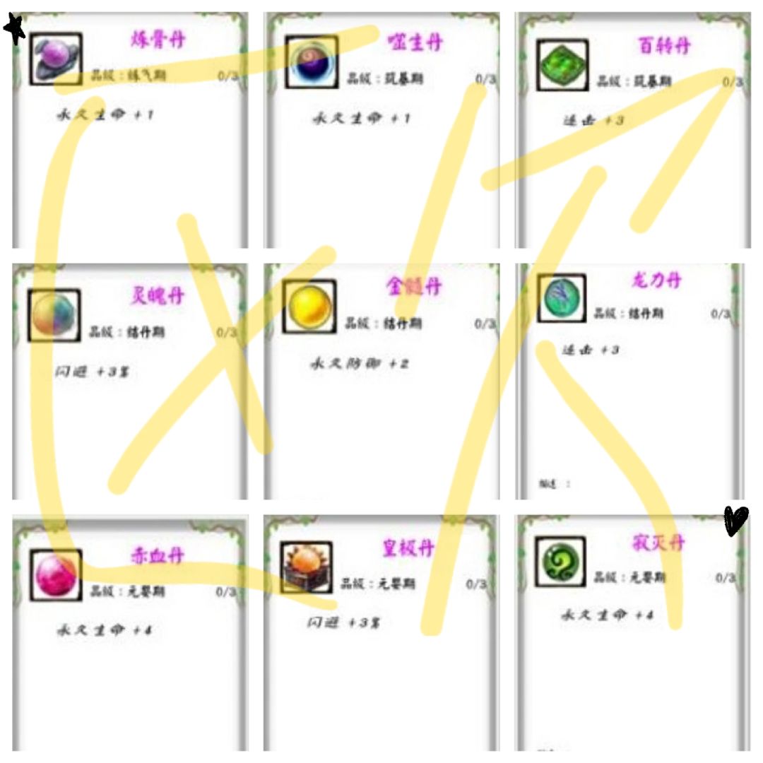 各种属性丹。。随时都可以吃