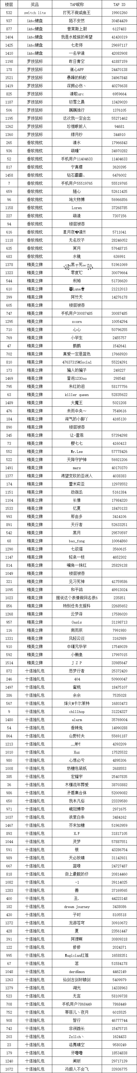 小莱特不说暗话,发奖了,以下是中奖名单: