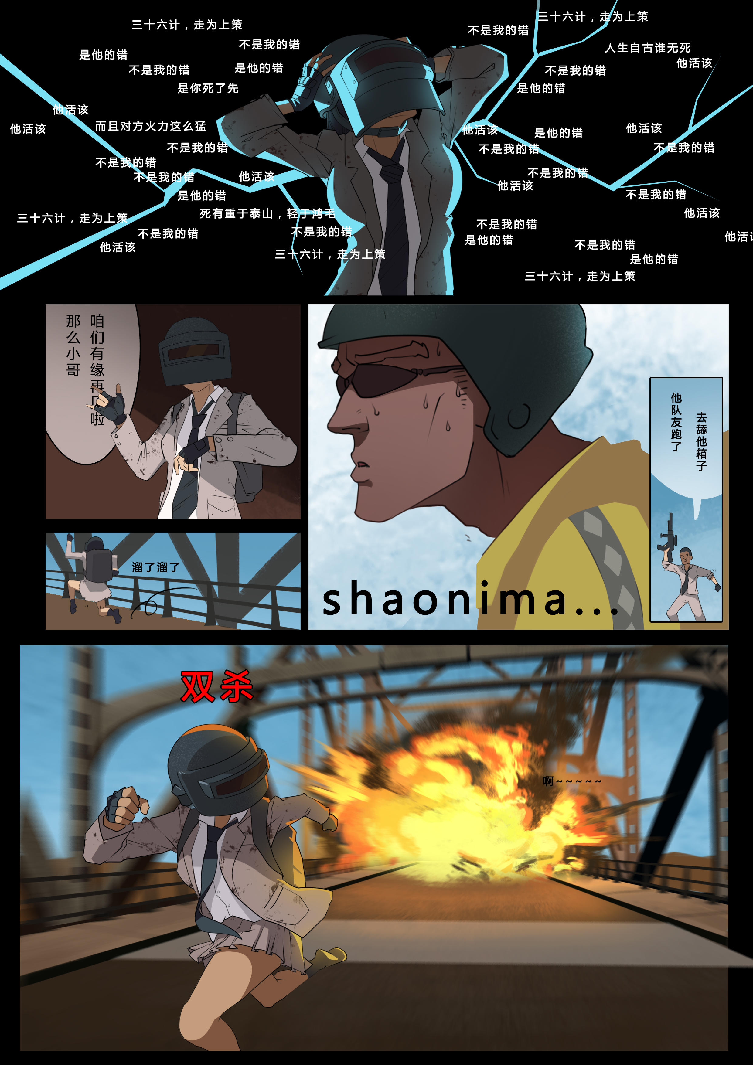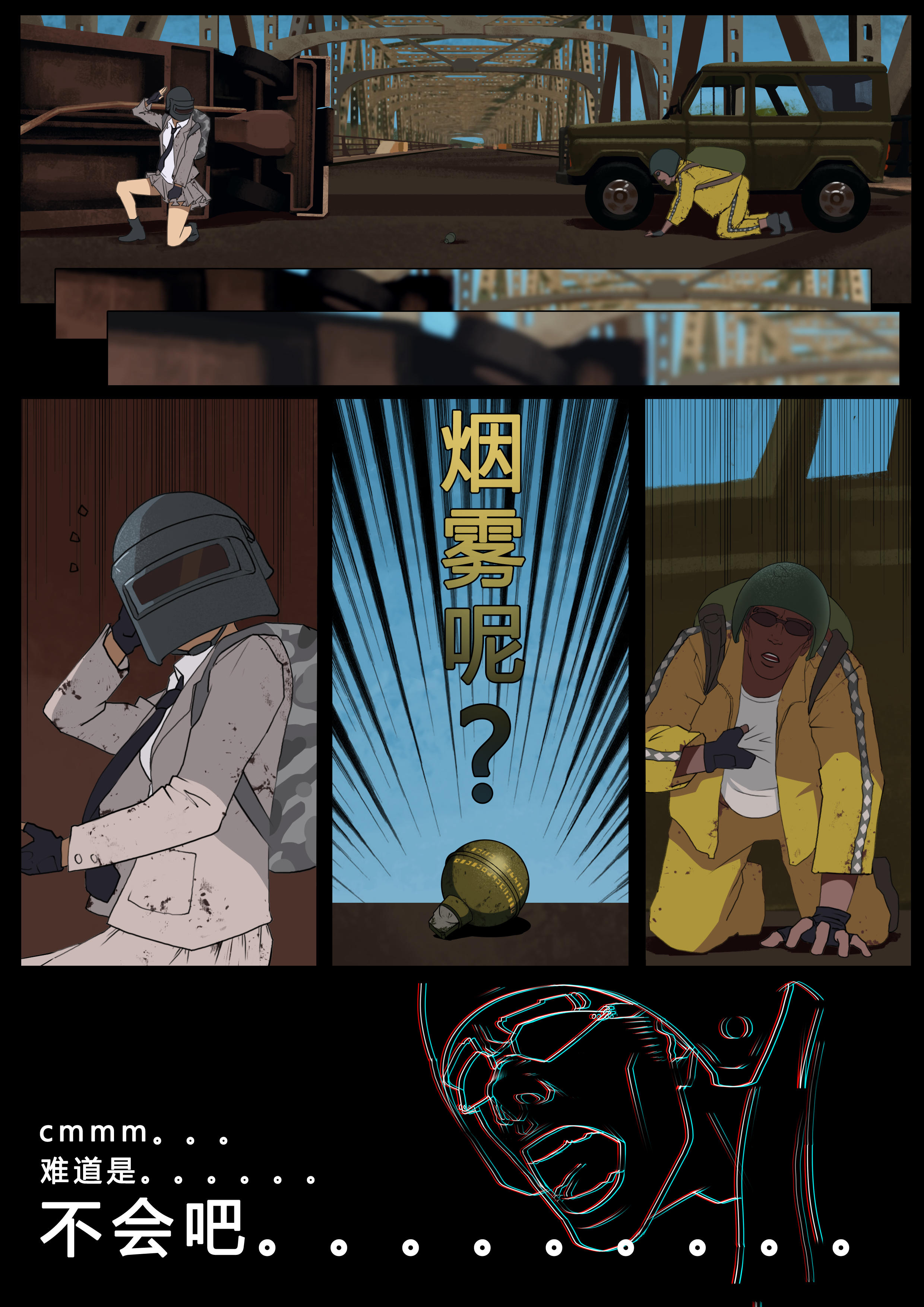 在堵桥的时候,双排大腿沉迷对枪不能自拔,在漫画小妹用十块钱耳麦的魔音指挥下,成功被敌人击倒.......