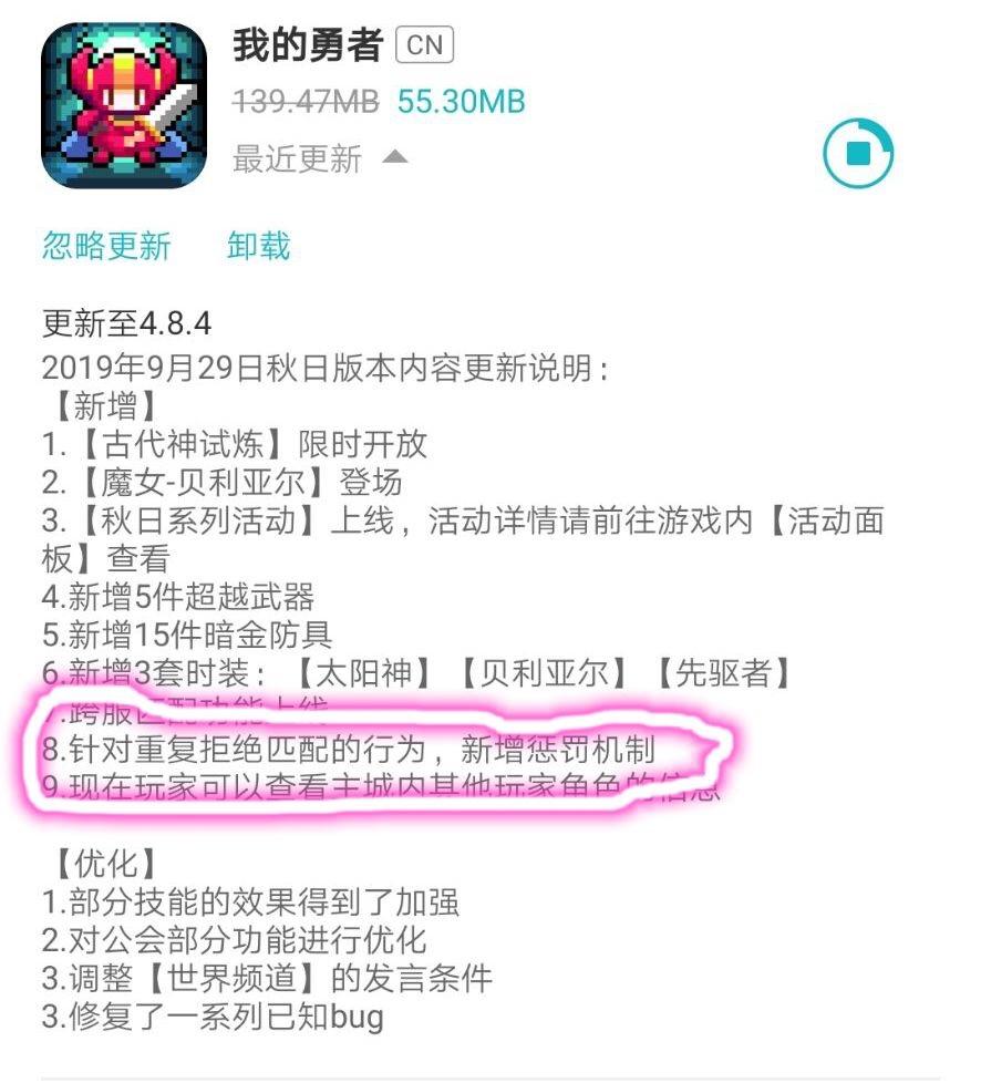 在本次更新内容中,我发现有一条是 “针对重复拒绝匹配的行为,新增处罚机制”,讲道理,这个变更在正常游戏里本应该是很合理又人性化的,但在现阶段的我的勇者中,感觉又是非常的不合理,为什么呢?