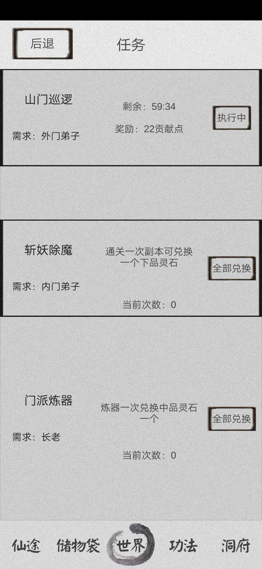 练气三阶以后可选择门派进入,提升职位增加贡献收益,贡献用处很大,在兑换里使用,还可以买卖装备。