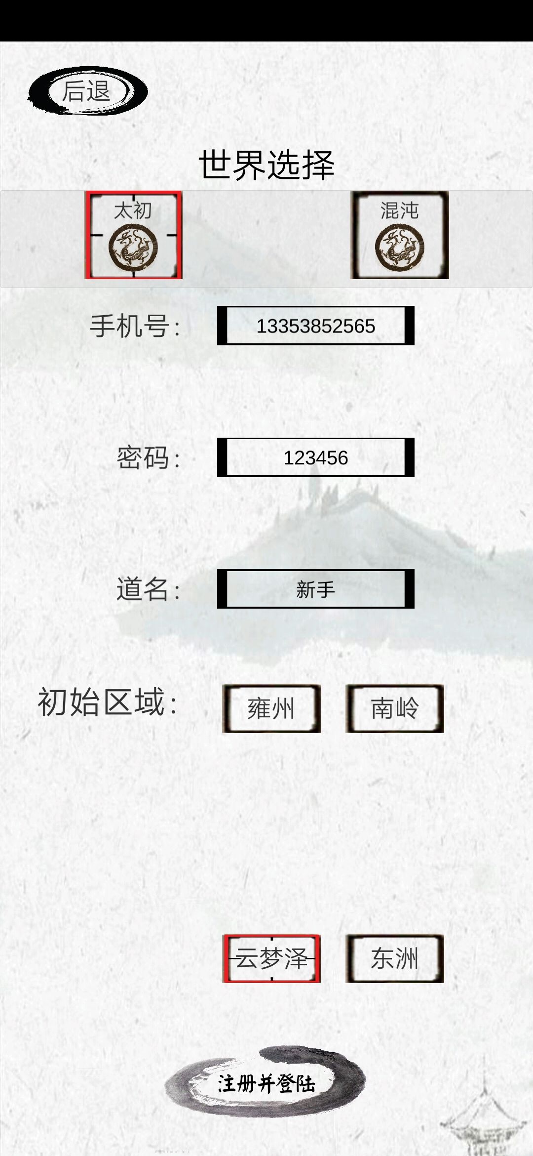 萌新注册游戏时,选择服务器‘太初’,目前服务器‘混沌’暂未开放。初始区域有四个,各门派功法、材料并无太大差异,筑基以后可以在鬼市自由选购,不用过于纠结。