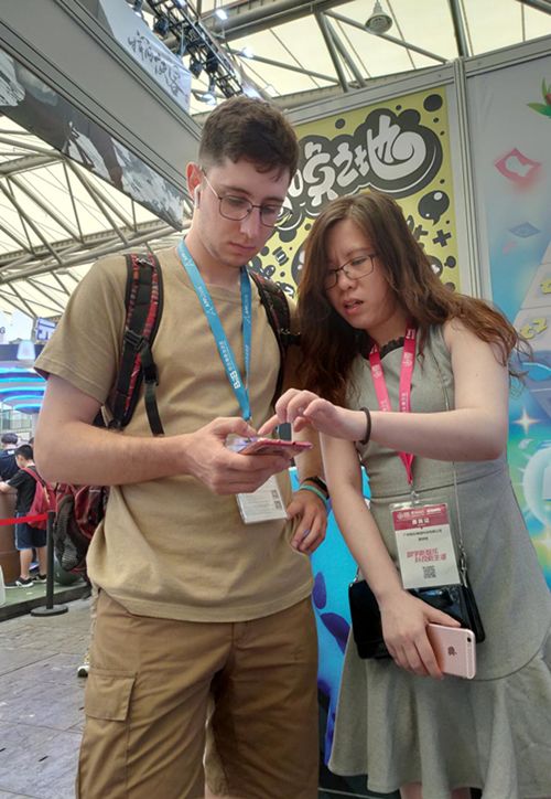 (海外“猎头”正仔细听取游戏介绍)