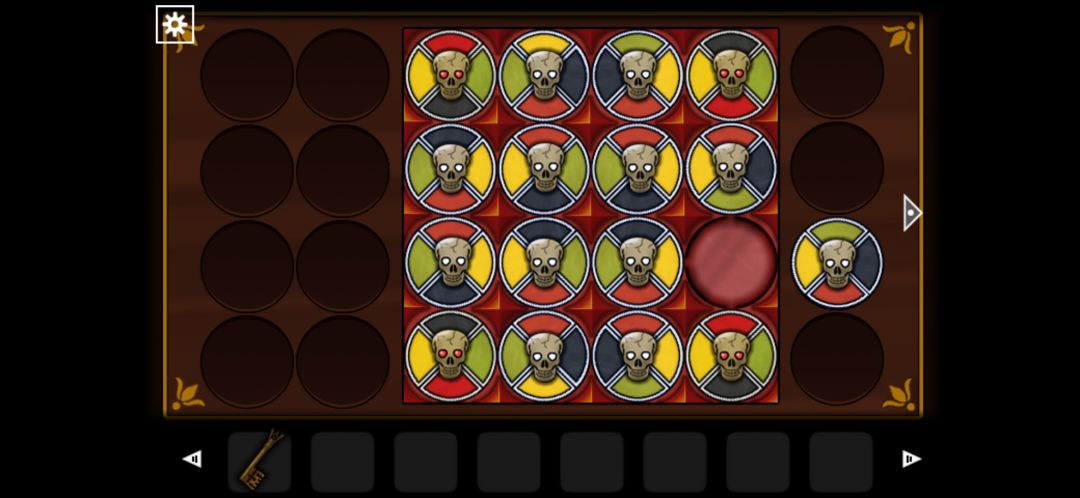 进入左边房间,点右边墙壁摆骷髅,线索是一楼壁画,摆成和帽子一样就行。