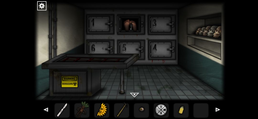 去左边停尸柜,先瞎点点出来脚,根据数字点对应柜子,得到钥匙。