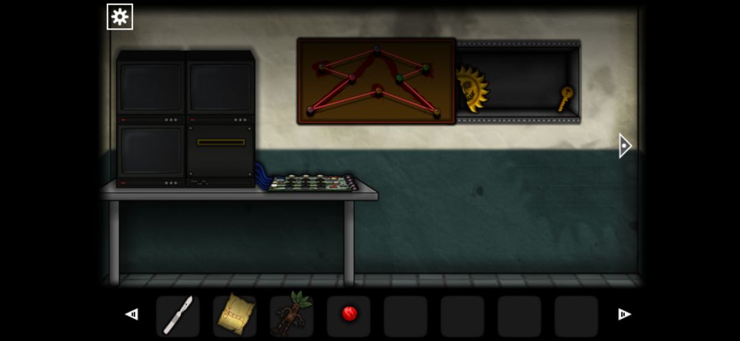 根据之前红字提示按顺序点击,打开左侧墙壁,得钥匙。