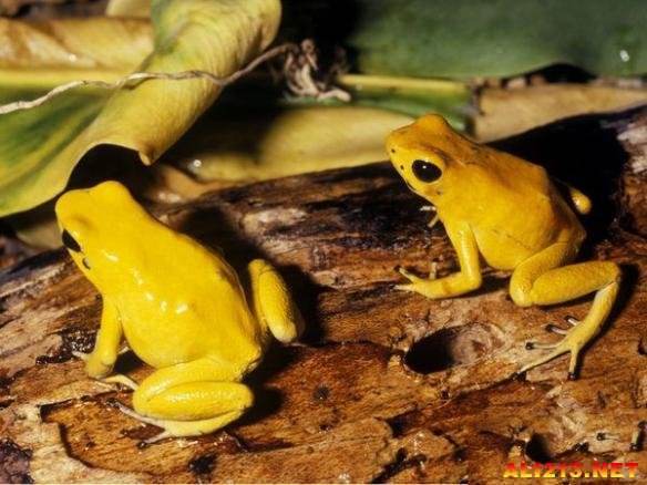 箭毒蛙是全球最美丽的青蛙,同时也是毒性最强的物种之一。其中黄金箭毒蛙是其中毒性最强之一的物种。黄金箭毒蛙的整个皮肤都有毒,被认为最毒的脊椎动物。一只黄金箭毒蛙体内的毒素能够在三分钟内毒死十名成年人,其毒液能引起剧痛,麻痹和心力衰竭。箭毒蛙主要分布于巴西、圭亚那、智利等热带雨林中,通身鲜明,全身及四肢都呈金黄色,其中以柠檬黄最为耀眼和突出。举目四望,它似乎在炫耀自己的美丽,又像警告来犯的敌人。除了人类外,箭毒蛙几乎再没有别的敌人。