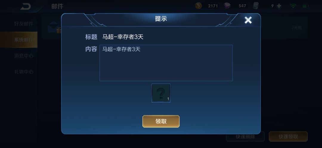 这什么情况,领也领不了,每次领其他邮件的时候还会卡住