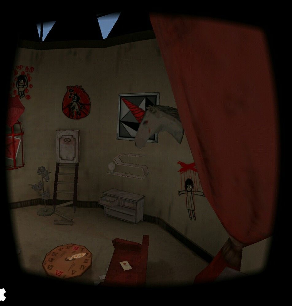 从小女孩视角看向独角兽旁边那幅画,