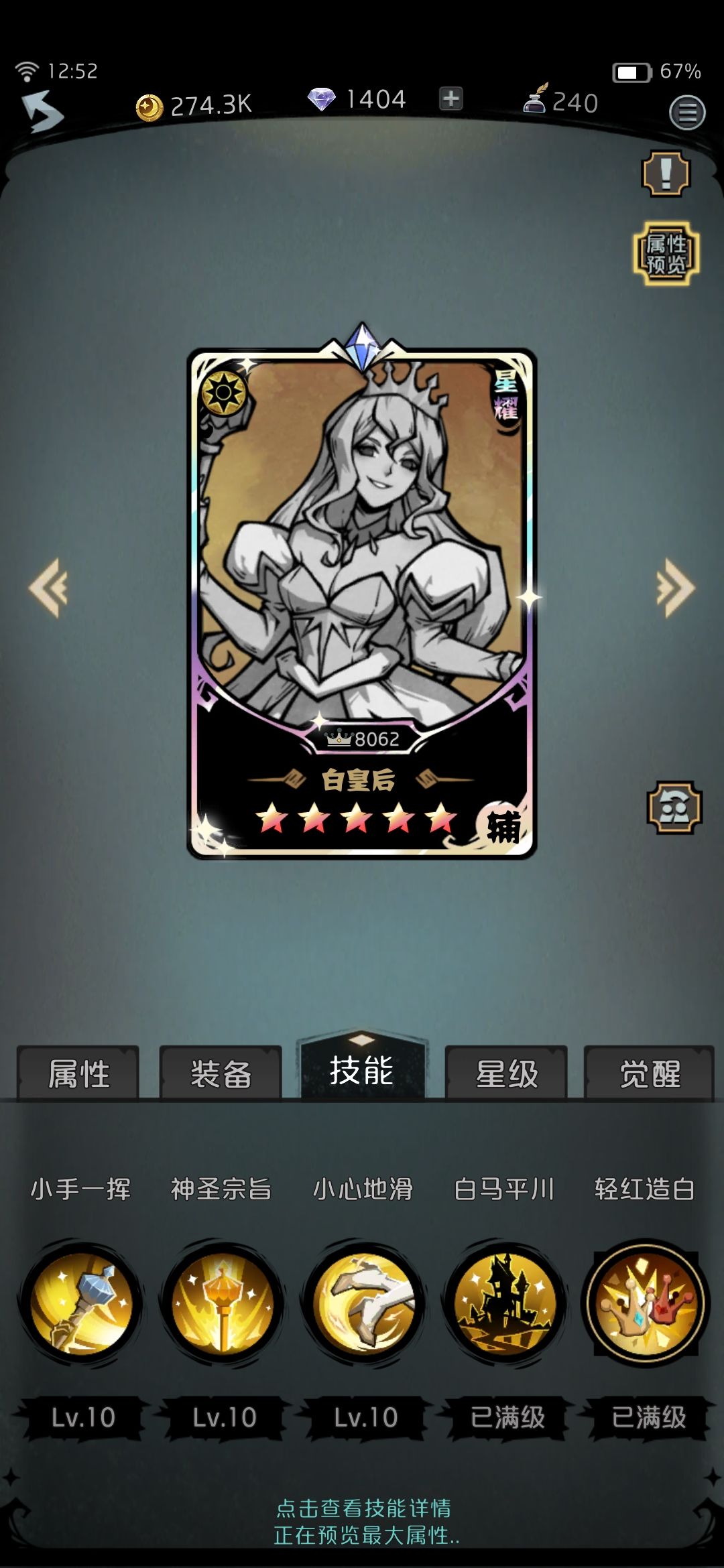 白皇后这次测试终于有了一个可以用的光系角色,整体强度可观,容易演,二技能是宝藏,被动前期很有用,觉醒技能0暴击率算是比较强力的。虽然跟t1强度可能还有些差距,但是耐不住她白给啊,这么好养不香吗。推荐指数★★★☆☆