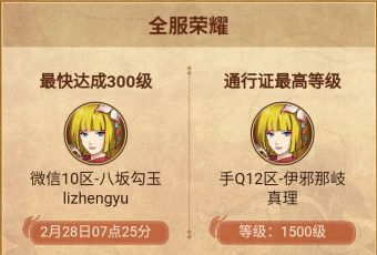 而在全服最快到达300级战斗通行证是微信10区-八坂勾玉lizhengyu的学员,帅吉私人赐你一个“快男”称号好吧!而全服最高等级的通行证是出自企鹅12区-伊邪纳岐真理学员,通行证等级达到1500等级,年轻人的肝就是好!