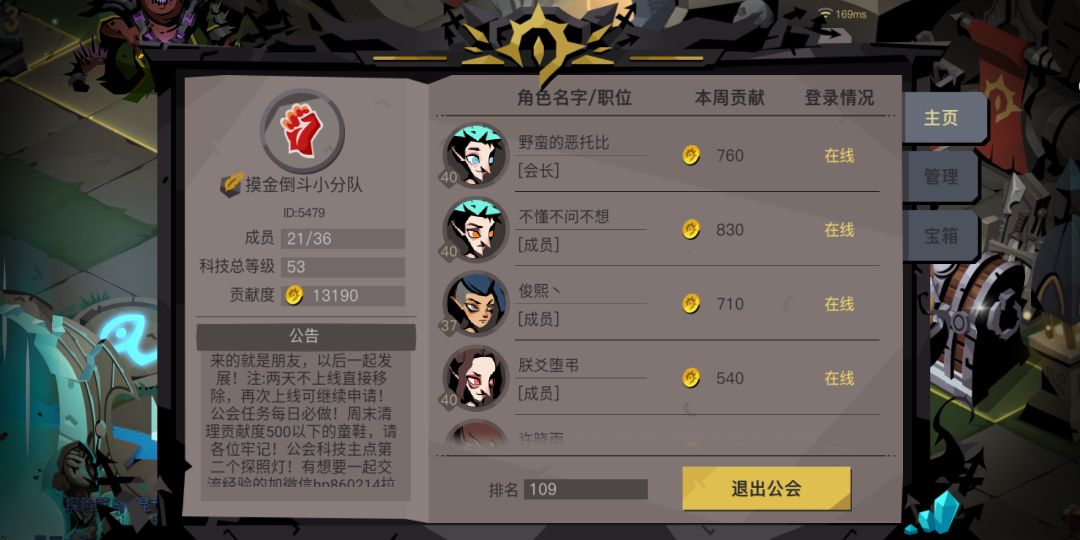 53级的公会招活跃的小伙伴了,一起玩,要多做公会任务哟,然后点公会技能可以变得更强!公会ID 5479