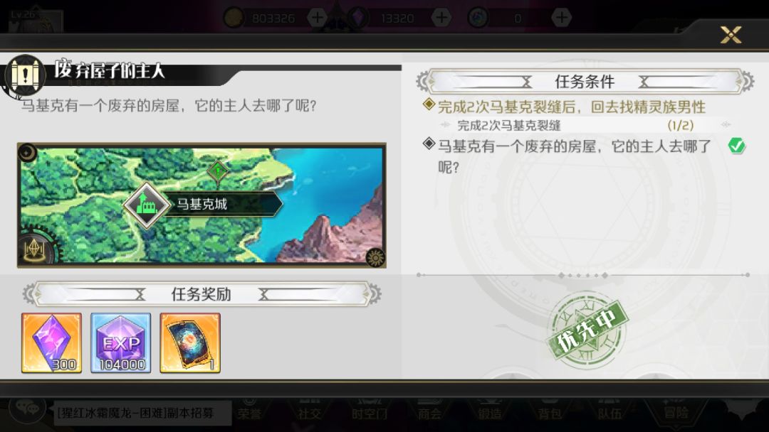 任务目标为通关两次马城裂缝,注意下马城裂缝推荐等级要24,刚解锁这个任务的时候可能打不过。