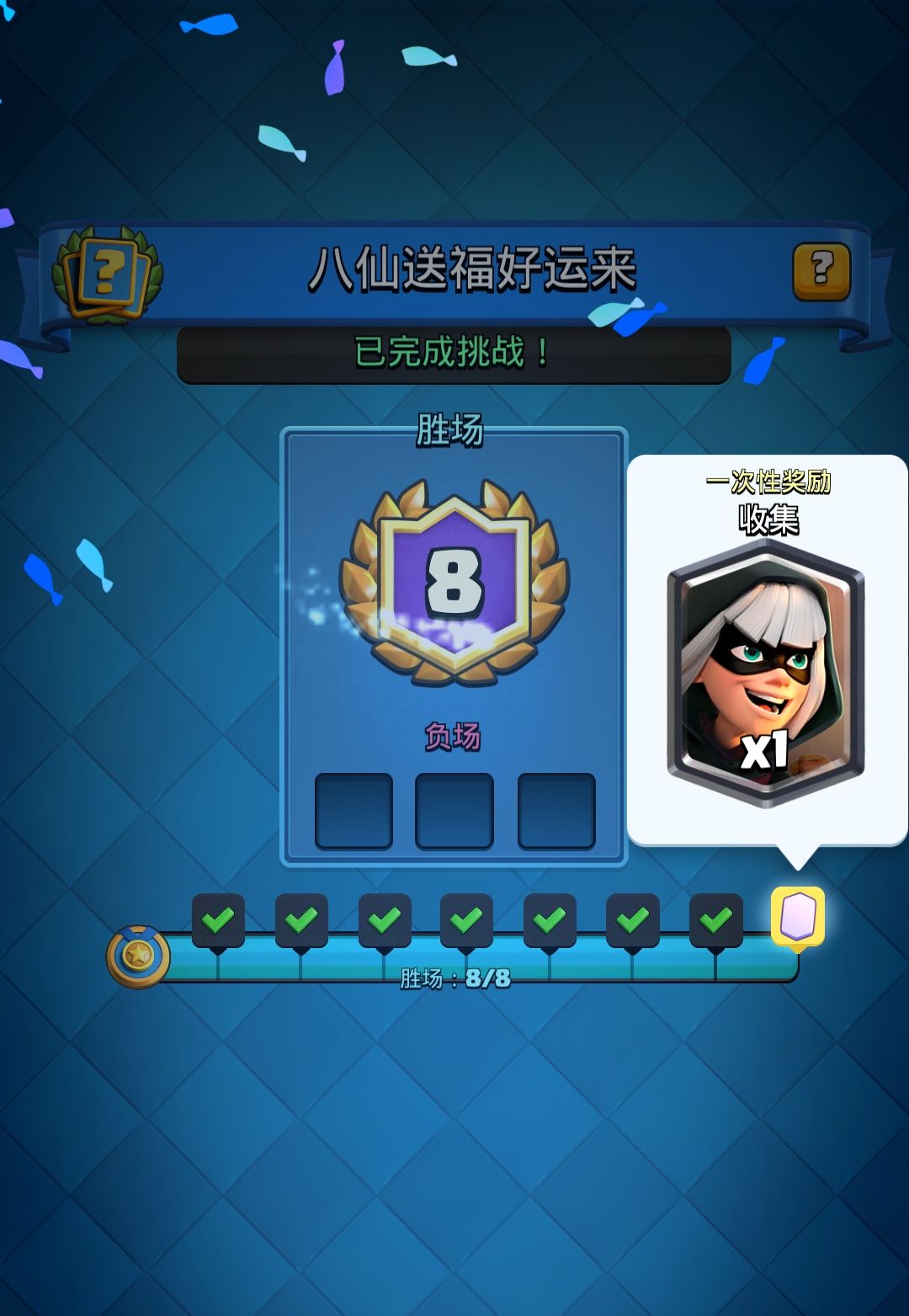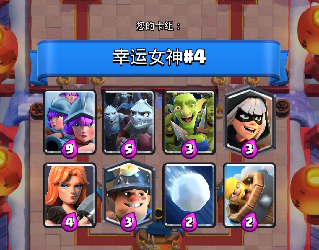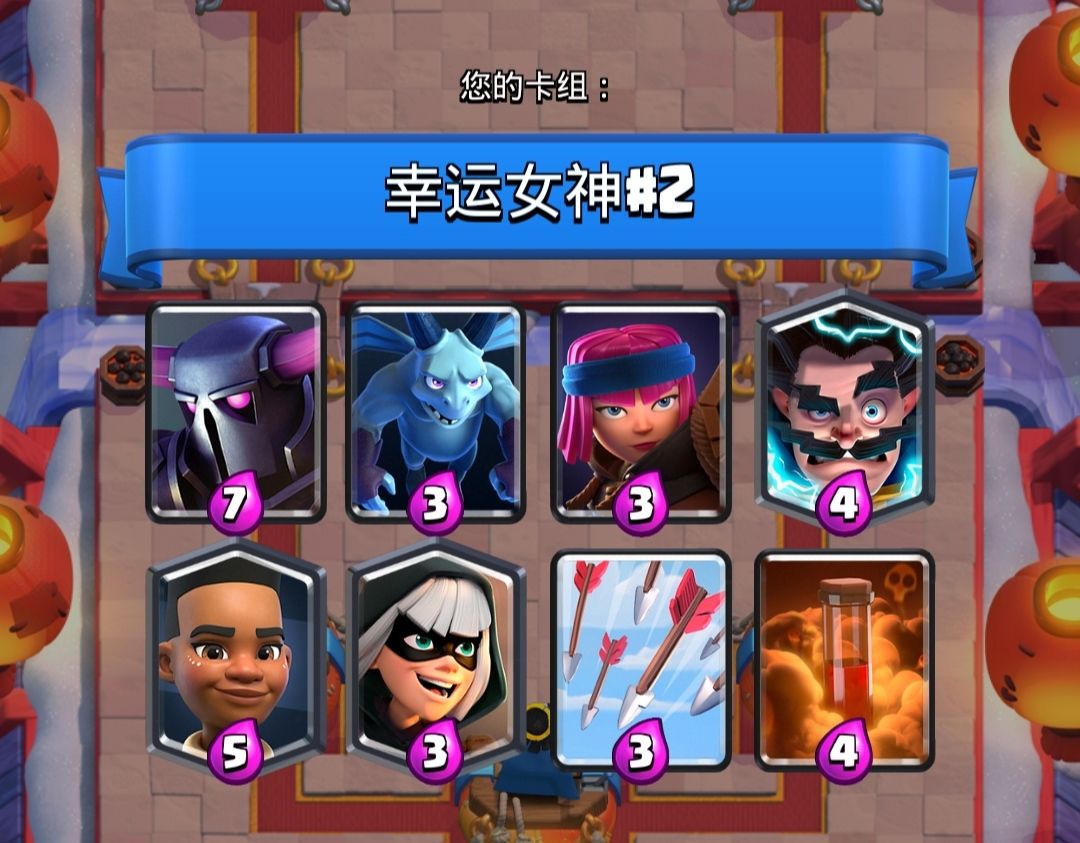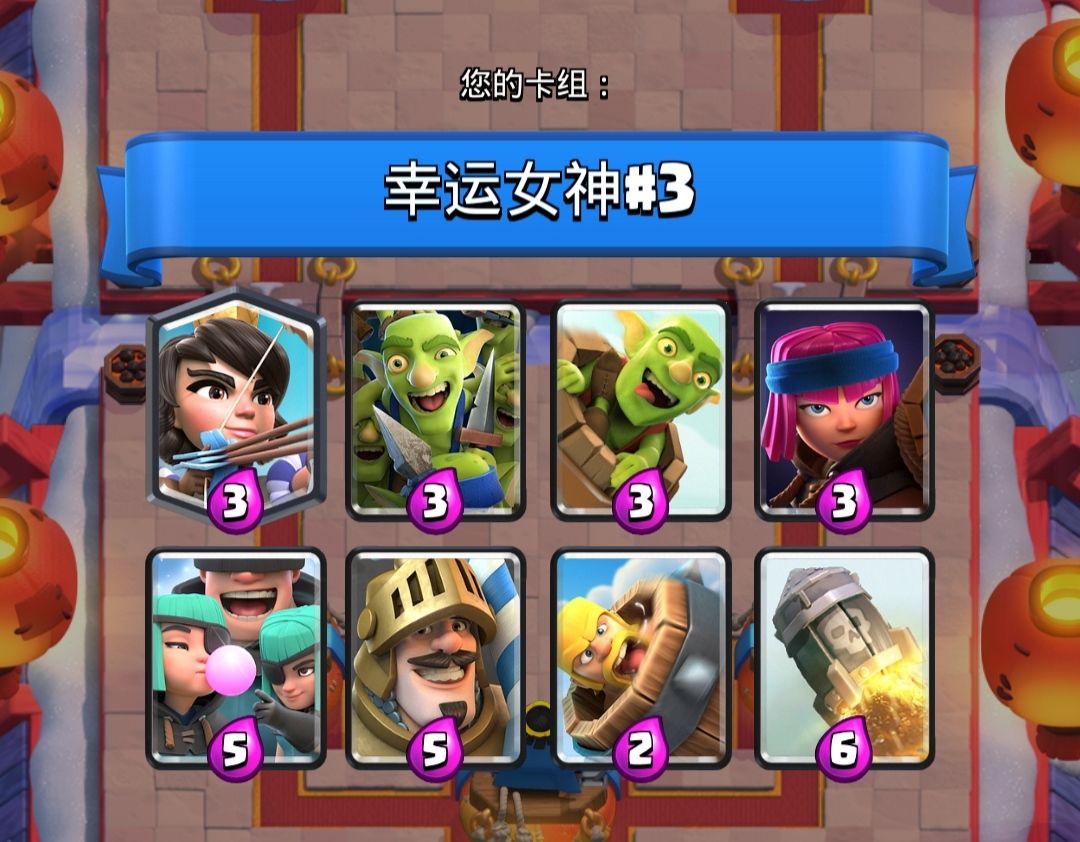 通过之前的实战我发现,八仙送福活动(以后统称八仙活动)与部落战中的经典挑战类似,是由系统在卡组池中,随机给出一套卡组。