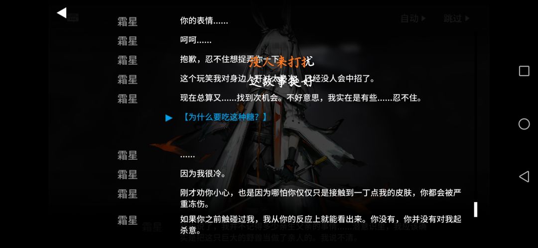 霜星在地底时捉弄博士,让博士吃下了那些用烈性酒精和刺激性调味料配成的所谓糖果。