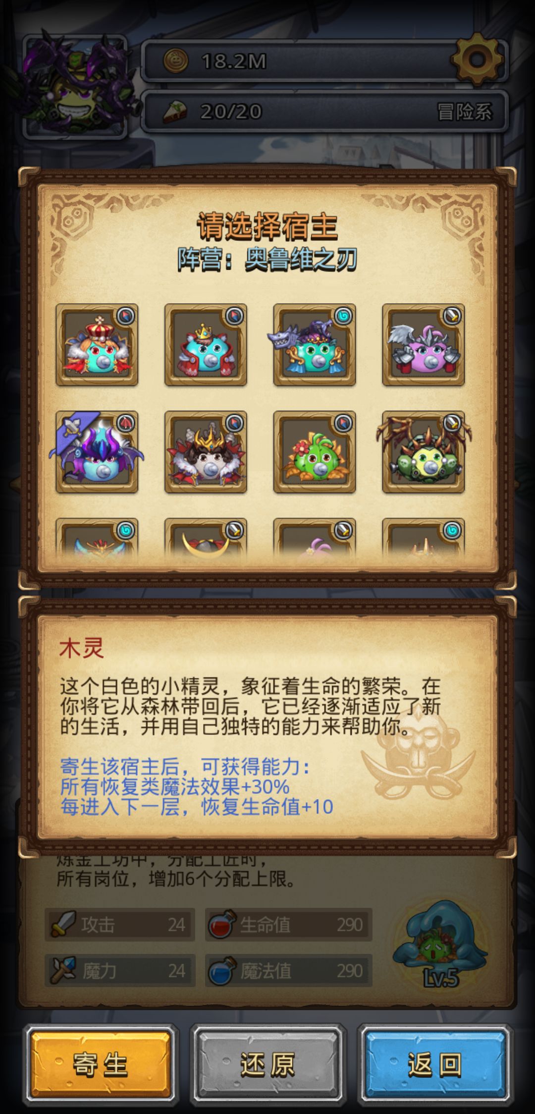 寄生能力:魔法系,恢复类魔法效果+30%,每进去下一层,恢复生命值+10