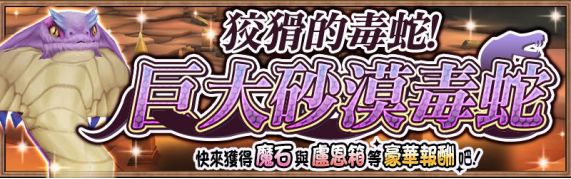 活动内容:讨伐巨大砂漠毒蛇获取宝箱&魔石