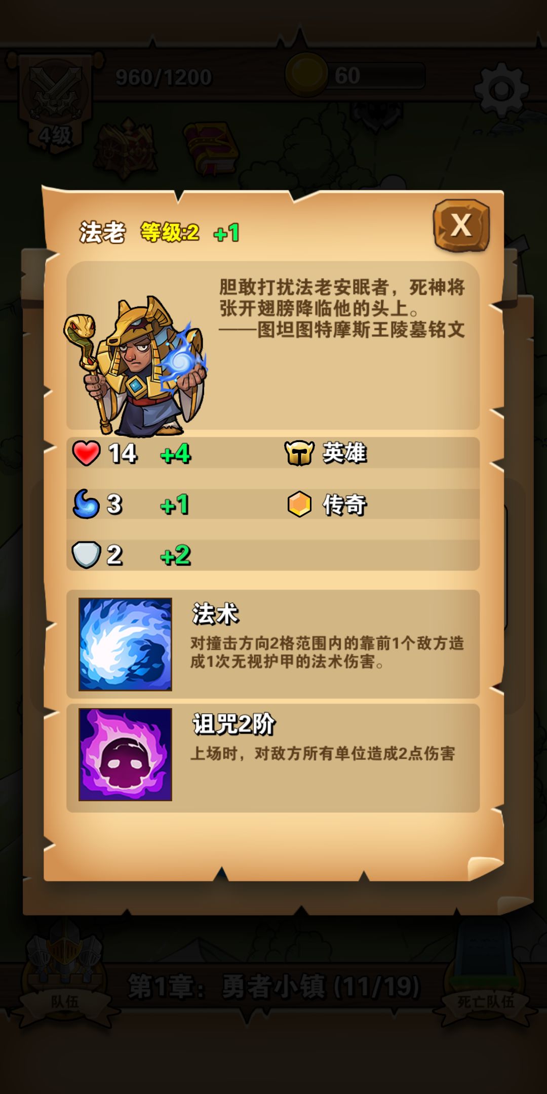 在第一章里,比较容易遇见的英雄是狂怒者、冰冻者、双刃忍和契约战士。但这些通通不推荐作为主力使用,原因是他们的输出完全不够还没有升级空间。所以,这里更推荐的阵容英雄是输出高又有极大提升空间的类型,比如熔浆炎魔,后期可以升级到16滴血6点攻击力4护甲的存在;比如法老,也是可以在后期升级到20滴血5点法强和4护甲。