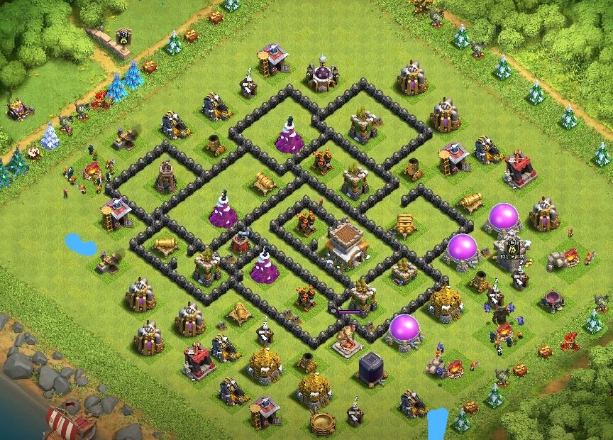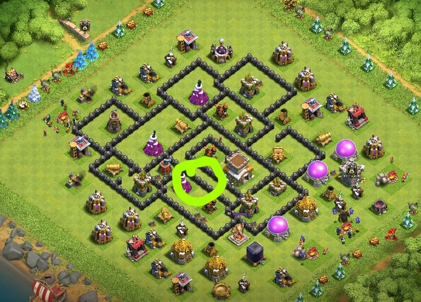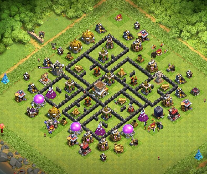 劈得稍微偏一点再加一瓶地震可以带走防空旁边的箭塔或者法师塔,为了防止大部队走偏,下主力部队前一定要清边(部落清边很重要!)事先可以在蓝线处的钻井和金矿处各点一条飞龙等钻井和金矿被摧毁后再下大部队