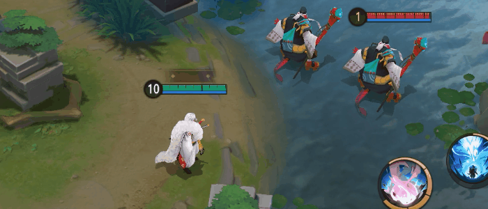 四技能[奥义:苍龙破]能让杀生丸蓄力后向指定方向冲锋,命中敌方式神后对其造成伤害和眩晕效果,同时对目标周围的敌人造成伤害和减速效果。冲锋途中可击退遇到的敌方士兵与野怪。
