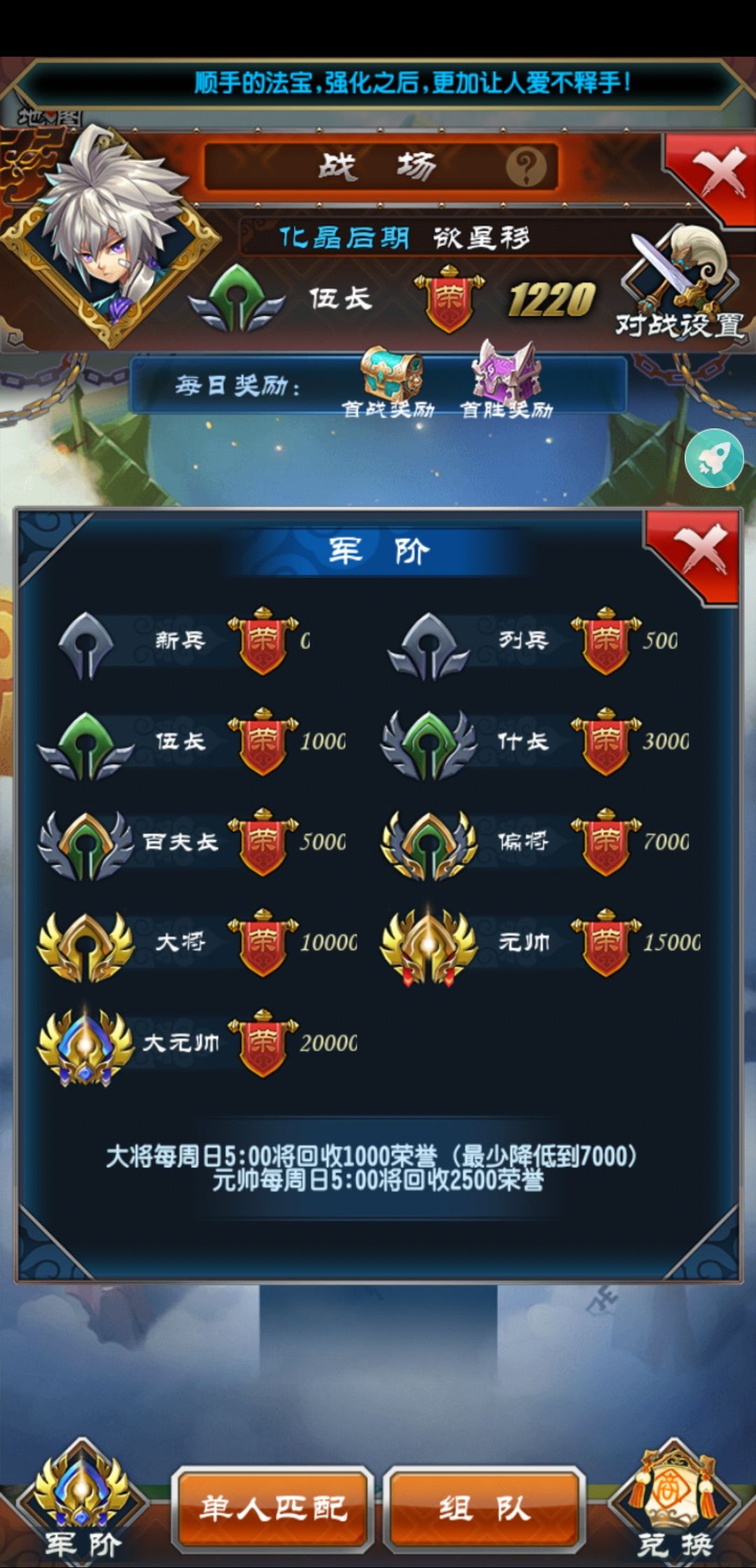 战场系统是游戏当中重要的资源来源之一,从师门地图进入,每周一三五的晚上9点到10点开启,一定要记得参加,对于休闲玩家而言,拿个首胜就已经足够了(主要是服务器太烂了一开战场就卡的不行实在是不想多打)。