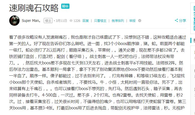 昨天小编在,论坛逛来逛去,很是无聊,突然发现有位仁兄写了一些刷魂石的攻略,感觉很是不错,就就就没忍住给了他个大礼包,我也就