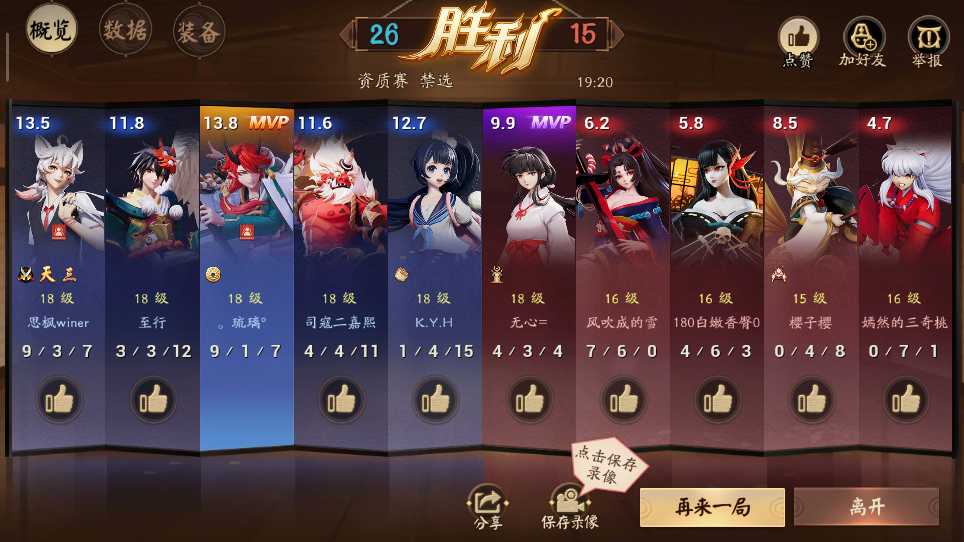 三路全被上高地的翻盘局,前期全队5个人头全是我的,然后我家队友一直在刷我野,对面趁机大龙然后三路高地,这游戏一般三路高地是翻盘不了的,然后我点了投降,全是红的,我就想,这群***都没放弃,我一个负责带他们的,放弃什么,于是就开始了清线,抓单,妖狐是我好友,刷兵线根野有点经济了,两面佛也都是先手打控制,妖狐输出,最后发现对面打团压根打不过我们。所以说,逆风局的朋友们,如果你战绩是最好的,请不要放弃,你的队友那么菜都没放弃,你放弃什么?