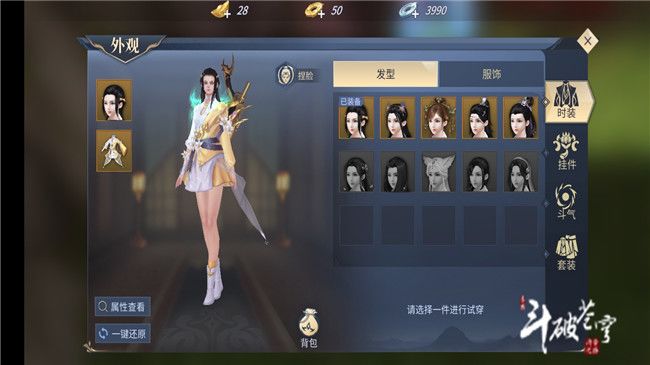 看看服饰方面的知识,打开外观我们可以看到分为时装、挂件、斗气、套装4大类,时装