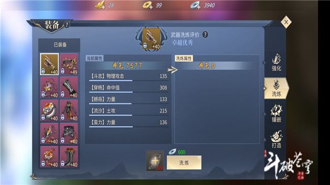 还有洗炼,游戏前期也不建议去弄,因为前期装备洗炼属性值加成较低,不值得去弄,