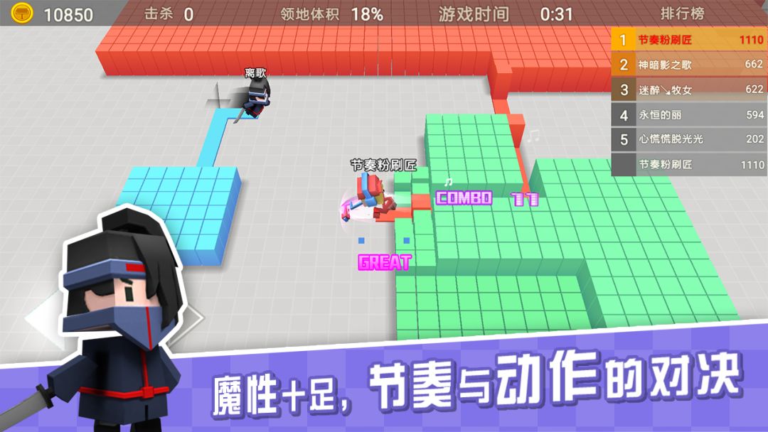 (评测)第一次评测,想想还有点小激动,好了,就在前两天出了一款意义深沉的游戏,它改变了索然无味的圈地,改成了有毒的节奏模式,没错,它就是粉刷匠啦!