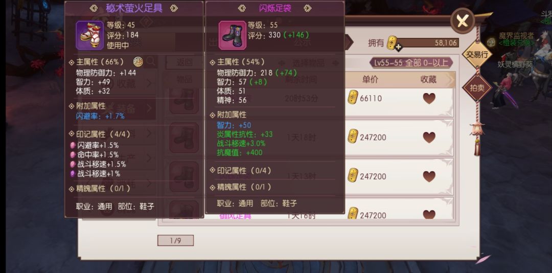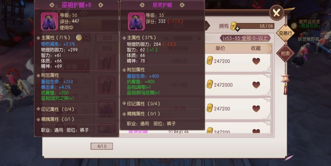 唯一要注意的一点就是他们的主属性百分比,太低的话,55级的裤子可能还比不上50级的。