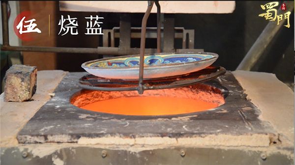 将整个圆盘胎体填满色彩之后不断放入炉内高温烧结、填色、再烧结,直至将纹样内填到与掐丝纹相平,青丘圆盘才算真的完成。最后经过仔细打磨,青丘灵狐之姿跃然而上,配上景泰蓝工艺之美,其国风之彩得以展现。