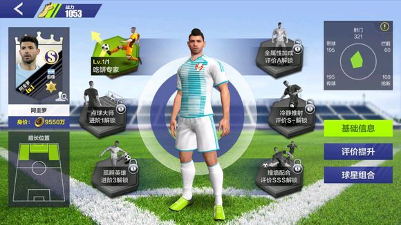 ss就解锁了吃饼和火炮,几乎完美覆盖全场,这种成型容易强覆盖射门员除了拉卡就是他了。sss解锁盗猎,盗猎加火炮想想就很美,虽然现在版本弱势,但终归有大放异彩的一天。