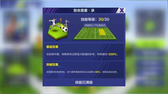 穿针引线率是个buff技能,和冲锋差不多,在每次进攻开始的时候触发,一个高传球的组织核心触发这技能后,前锋都可以随便直塞。