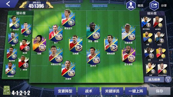 空霸弥补角球,吃饼燎是范围扩大刚好和火炮范围衔接,基本做到前场全覆盖,三技能射门大师完美避过点球大师的冲突,美中不足是成型晚,sss前禁区外接球丢球率极高。