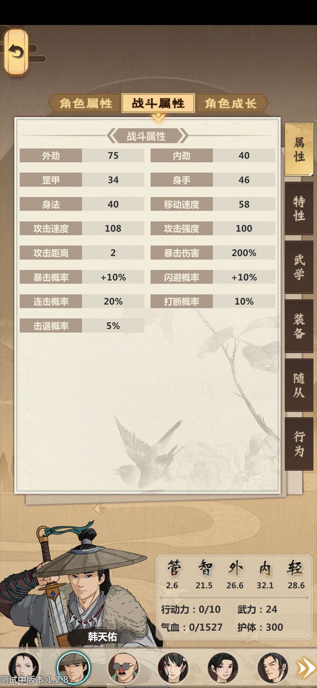3.6轻功+3身法+22身手=22移速 所以得这么大的属性差距就多了他36点移速(我还没算我天赋加的移速)………这个游戏地图就这么大,还大多时候是站撸,移速除了让自己卡BUG机率更高外没有什么用,外功提高能反应在外劲和气血上,我能肉眼可见的看我的伤害变高了,血变厚了,内功同理,就连管理也能反应在随从上,但是轻功身法身手反应出来的战斗属性就只有移速,我就觉得NMB离谱,希望让轻功能合理反应在战斗属性上,智慧不加战斗属性就算了也正常,轻功不加连击,不加闪避也太NC了吧,望正式服的时候能有改进.