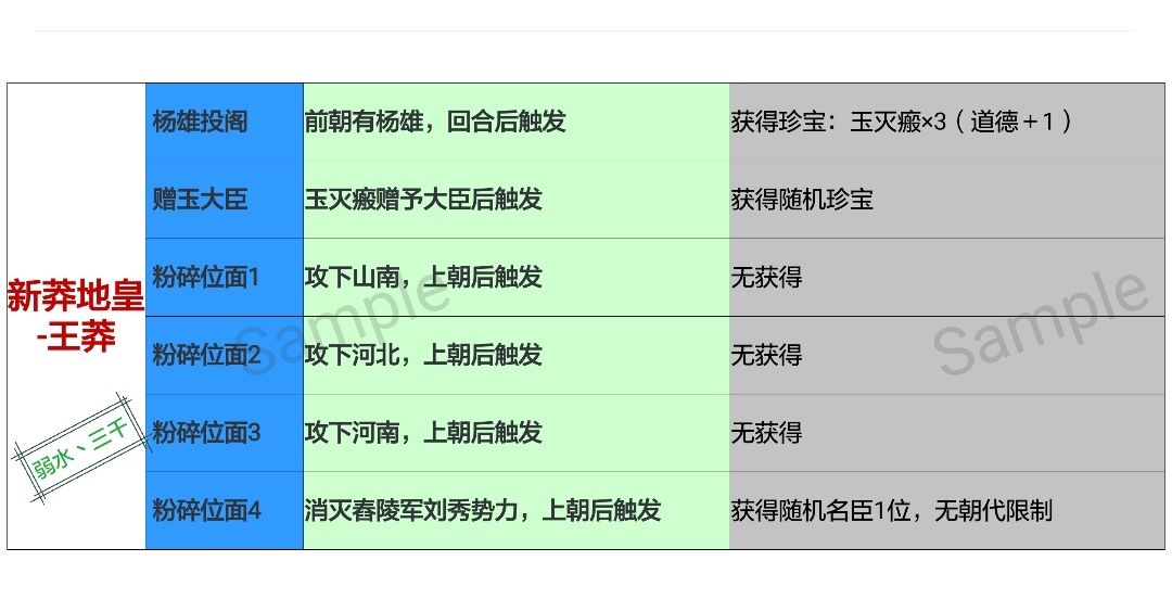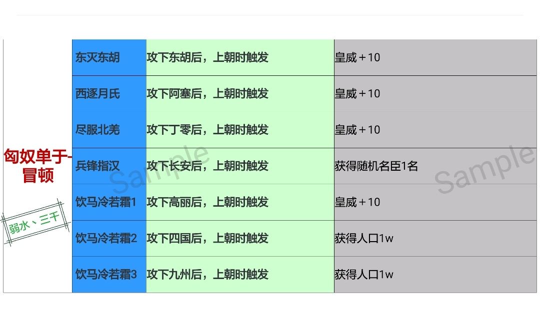 朝代buff,前期每回合民心+1,民心>70,就可以无脑强征了,比陆王心学还强。两个历史技能应该都算增益技能,毕竟妃子是不会缺的,随便送就是了。最高对汉朝伤害加成50%,和武帝+双壁的加成一样。难以想象这是蓝卡。