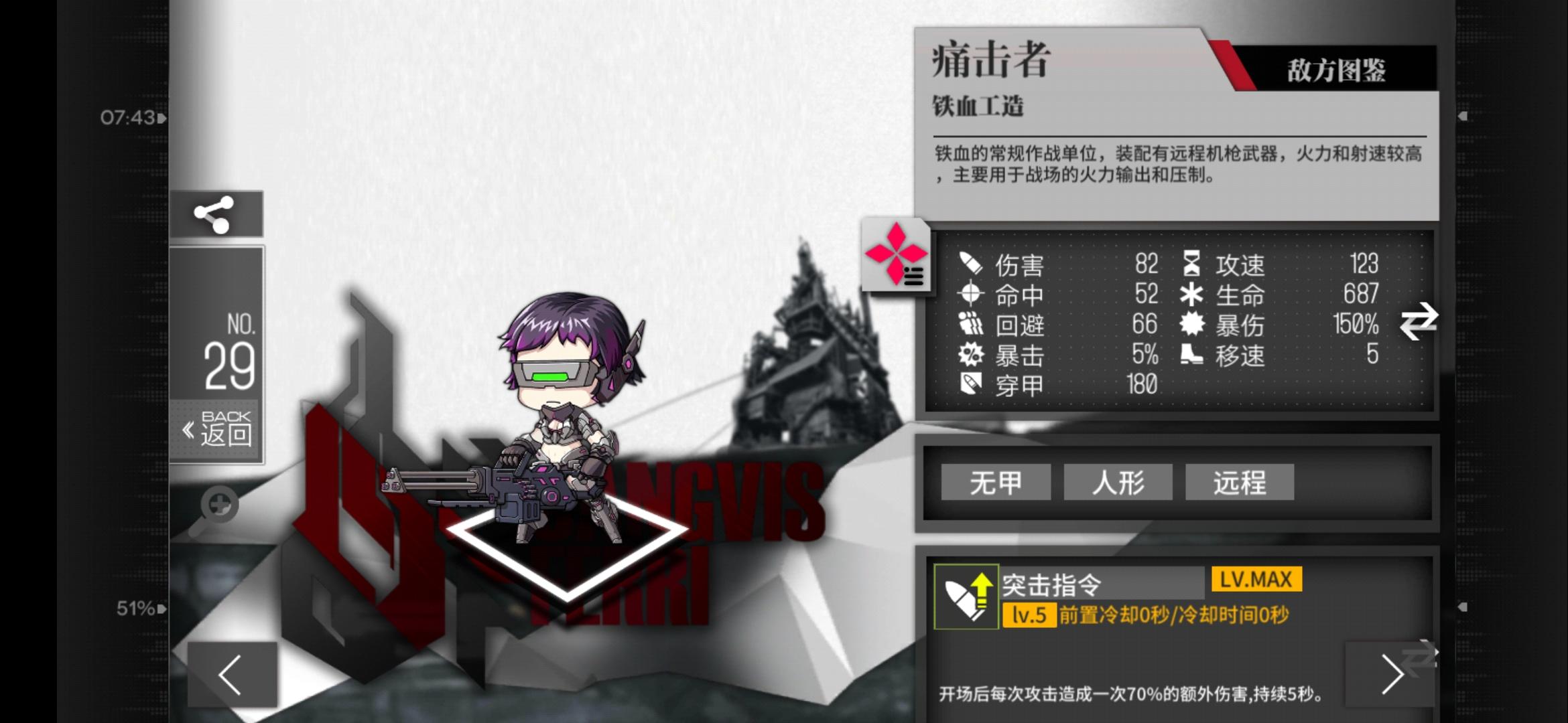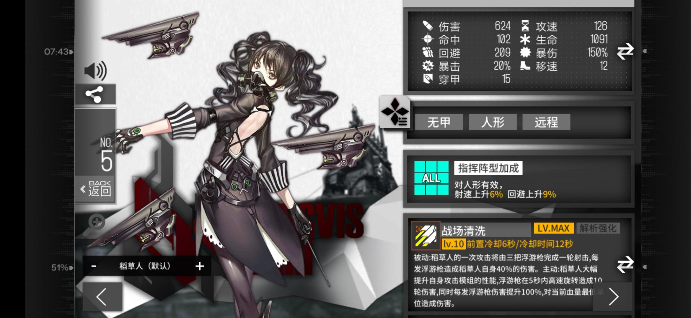 52命中的痛击者打50闪的敌人,上面的伤害打个五折吧,直接被狗堵死。搞不好稻草人开技能清完后排了,前排绿狗还没打完。(只是猜测,稻草人开技能期间能打多少血没有细算)